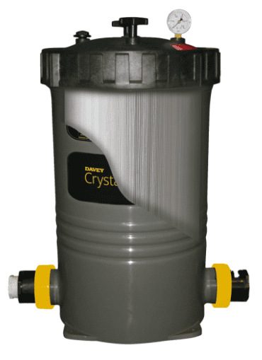 Built from high-impact polypropylene in a solid one-piece, non-corrosive tank, the ER Series is designed for long service life in tough outdoor conditions. Inside, the filter uses an extra-large, heavy-duty cartridge made from reusable polyester fabric with wide, deep pleats to maximise dirt-holding capacity, improve filtration performance, and extend the time between cleans.